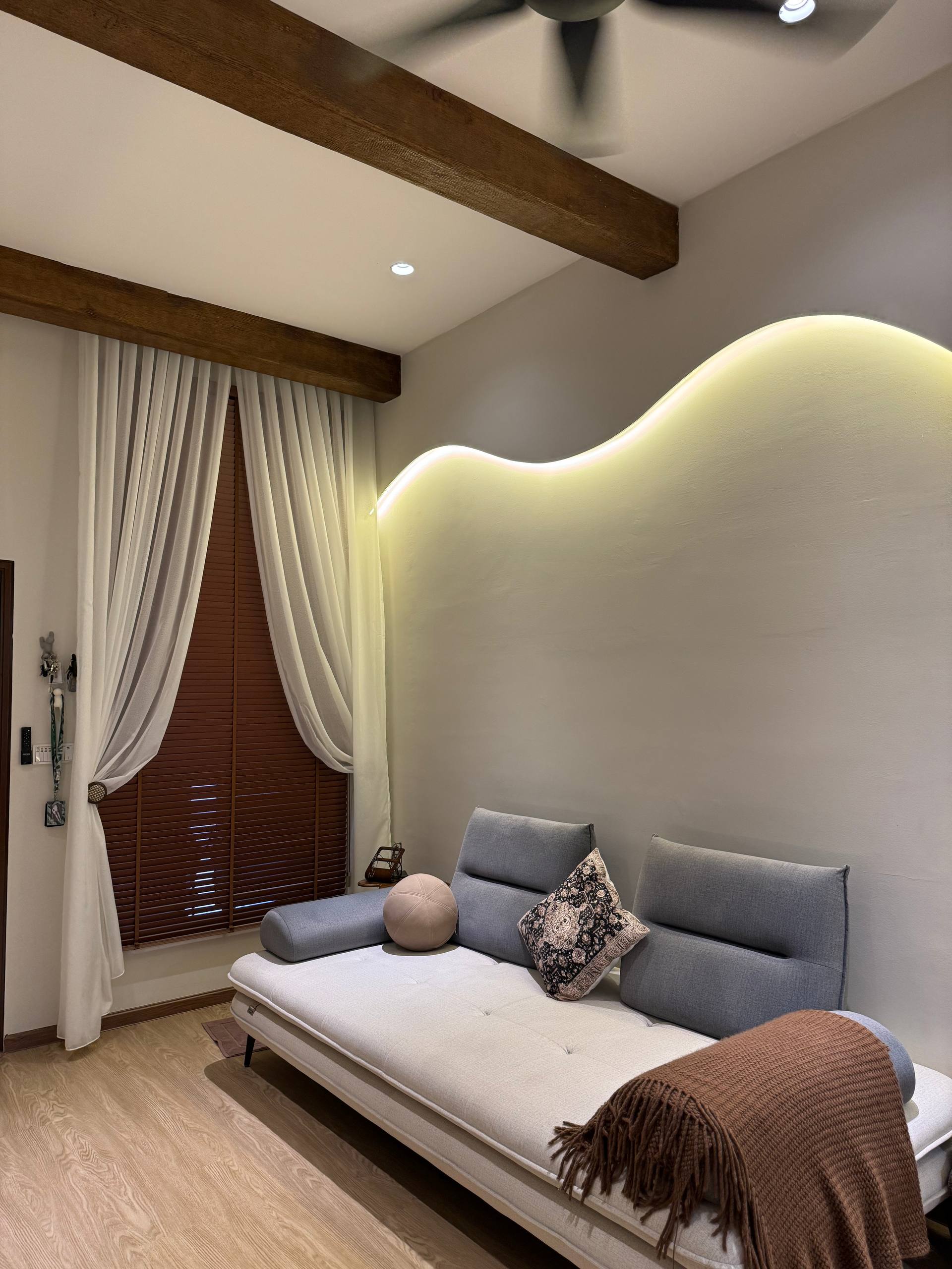 Master Bedroom: Custom built-in wardrobe and head unit designed for functionality and style.