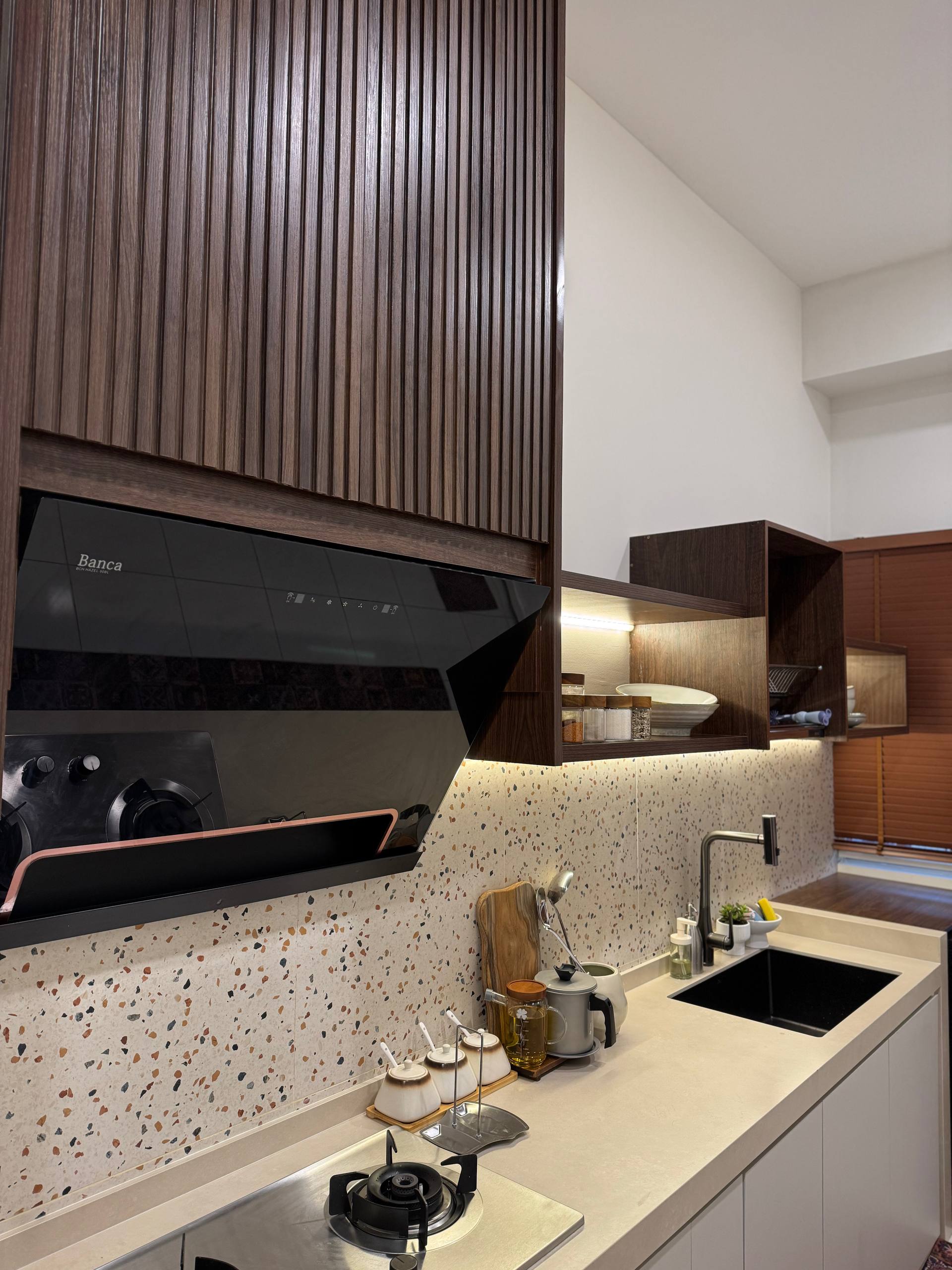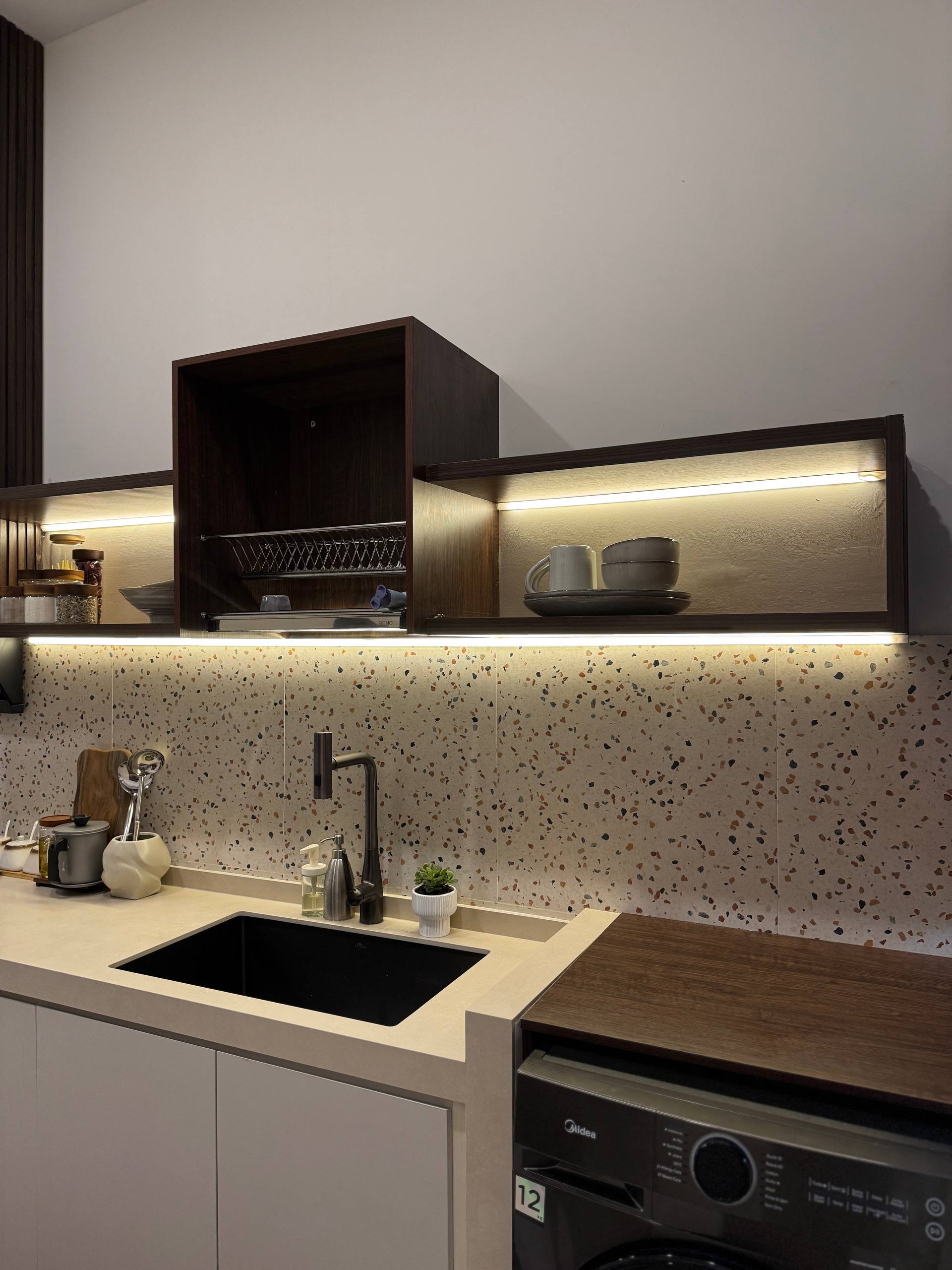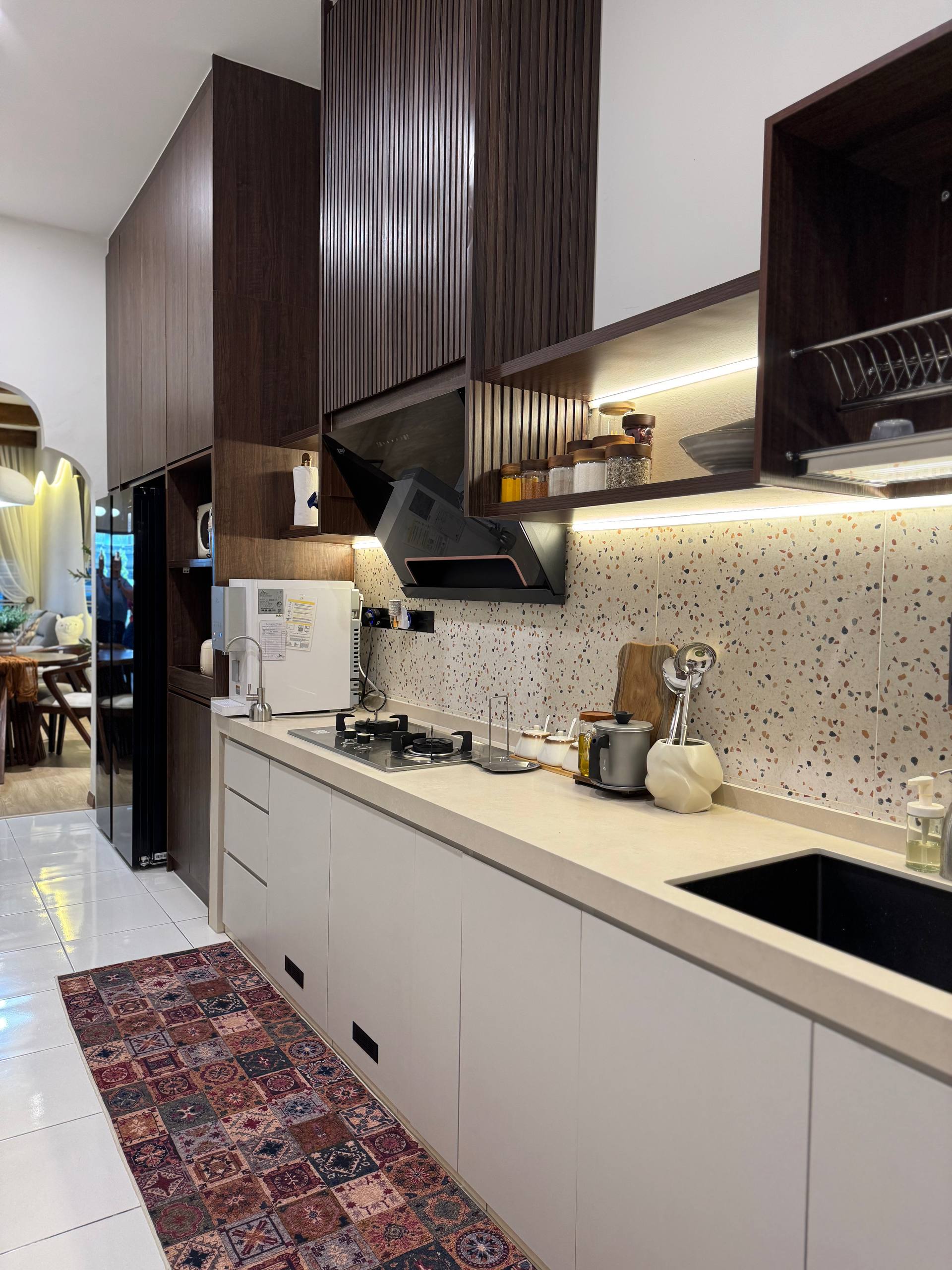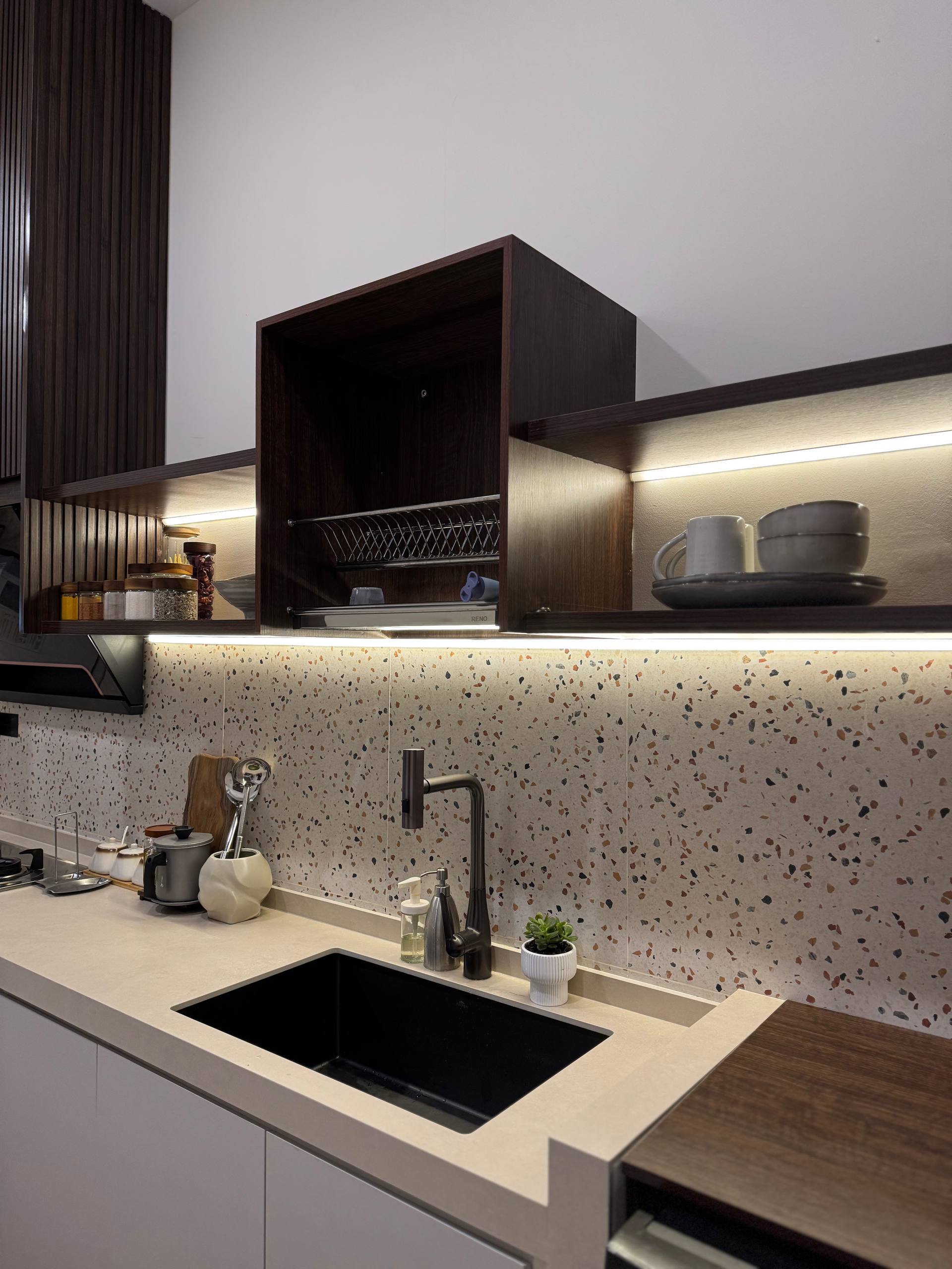 This residential interior renovation project combines modern comfort with warm natural tones. Works completed include: