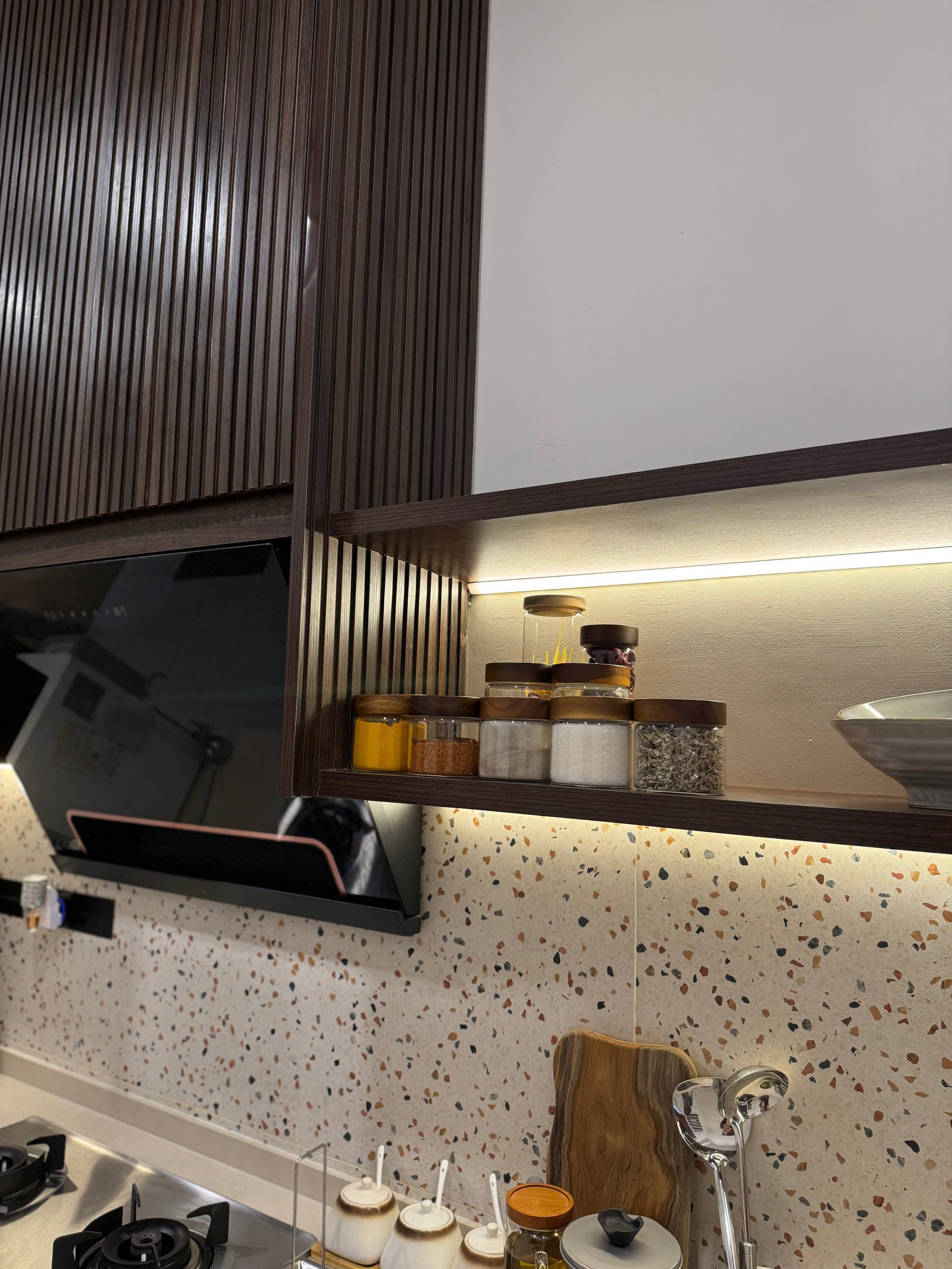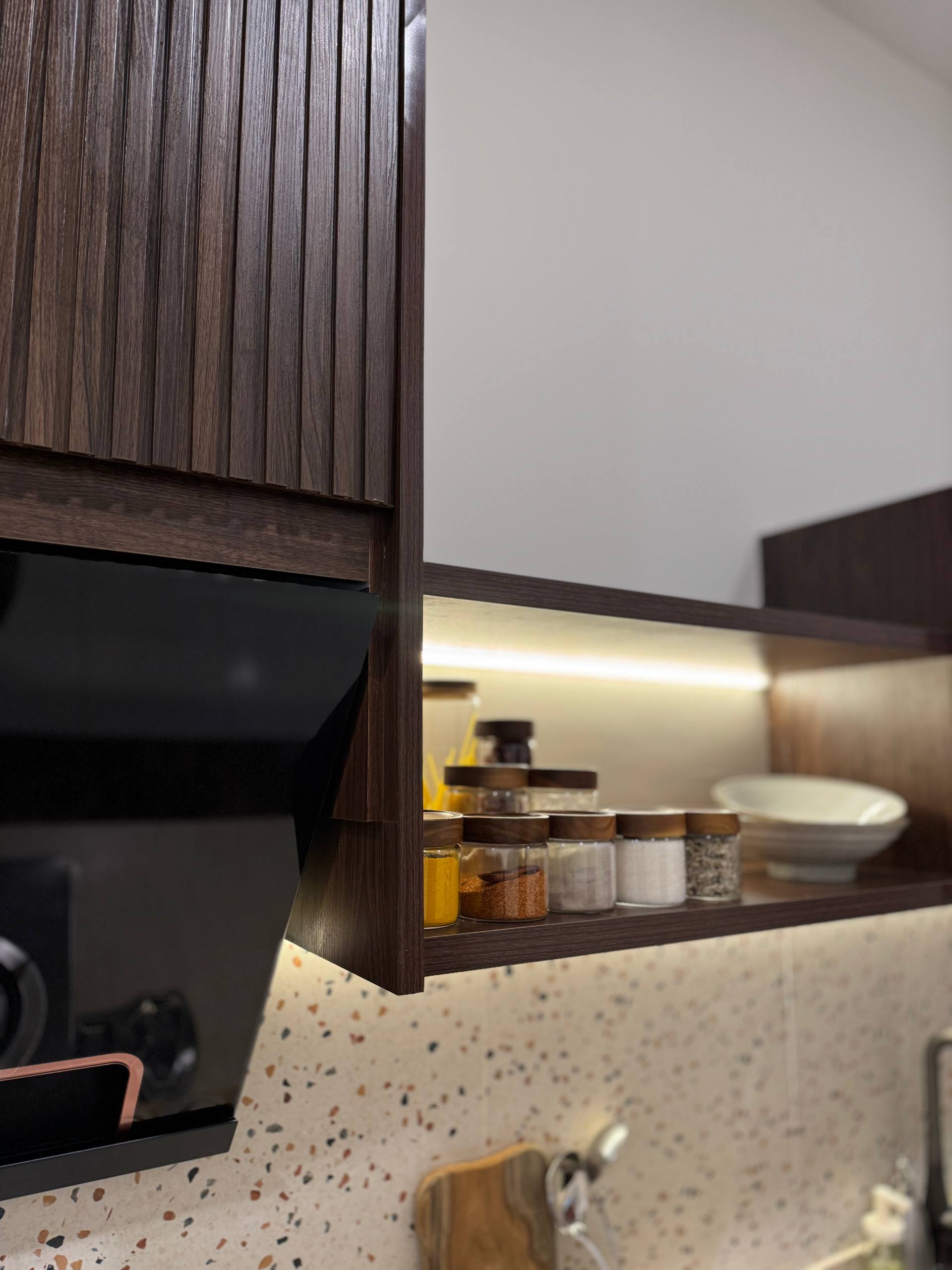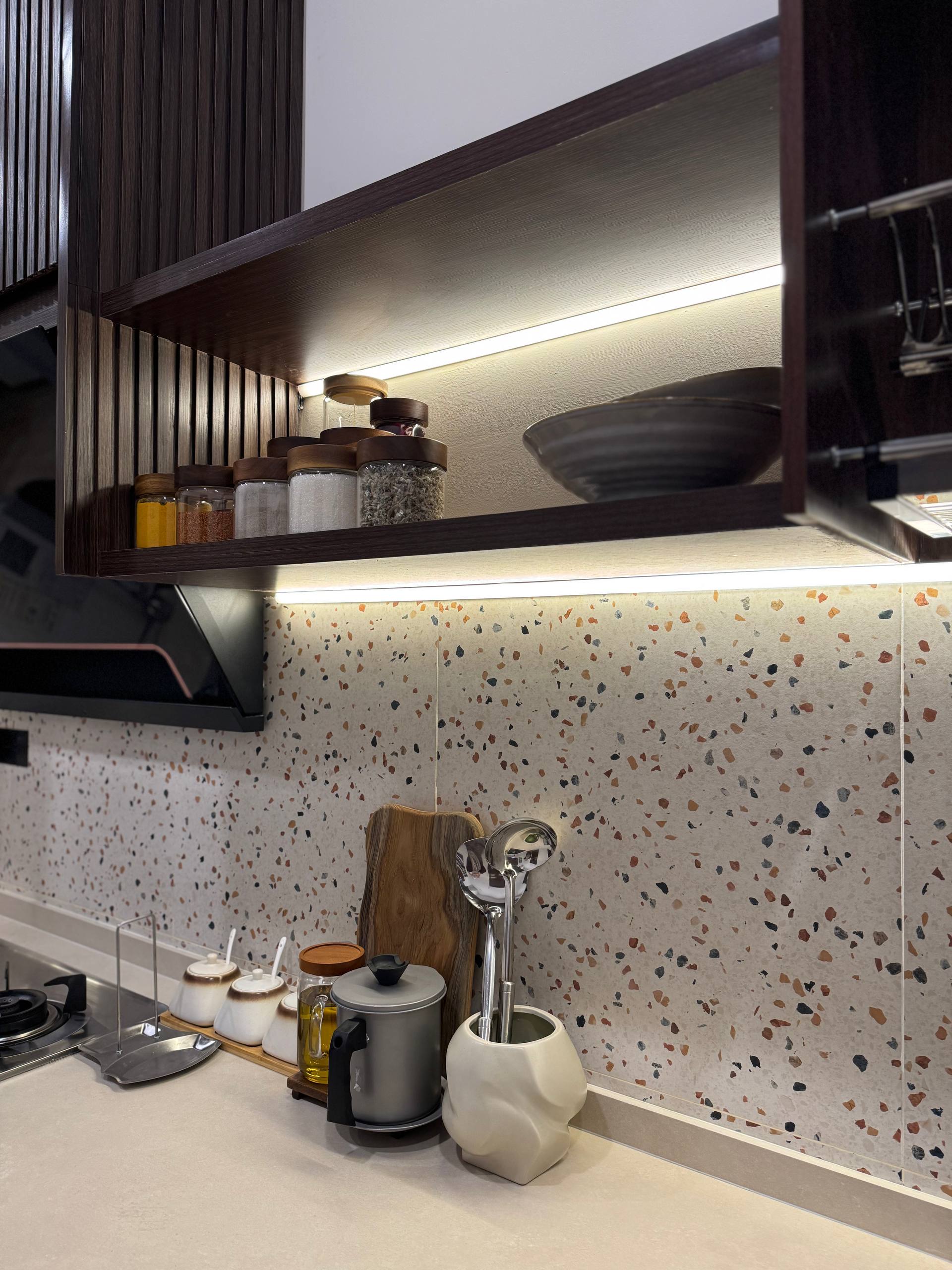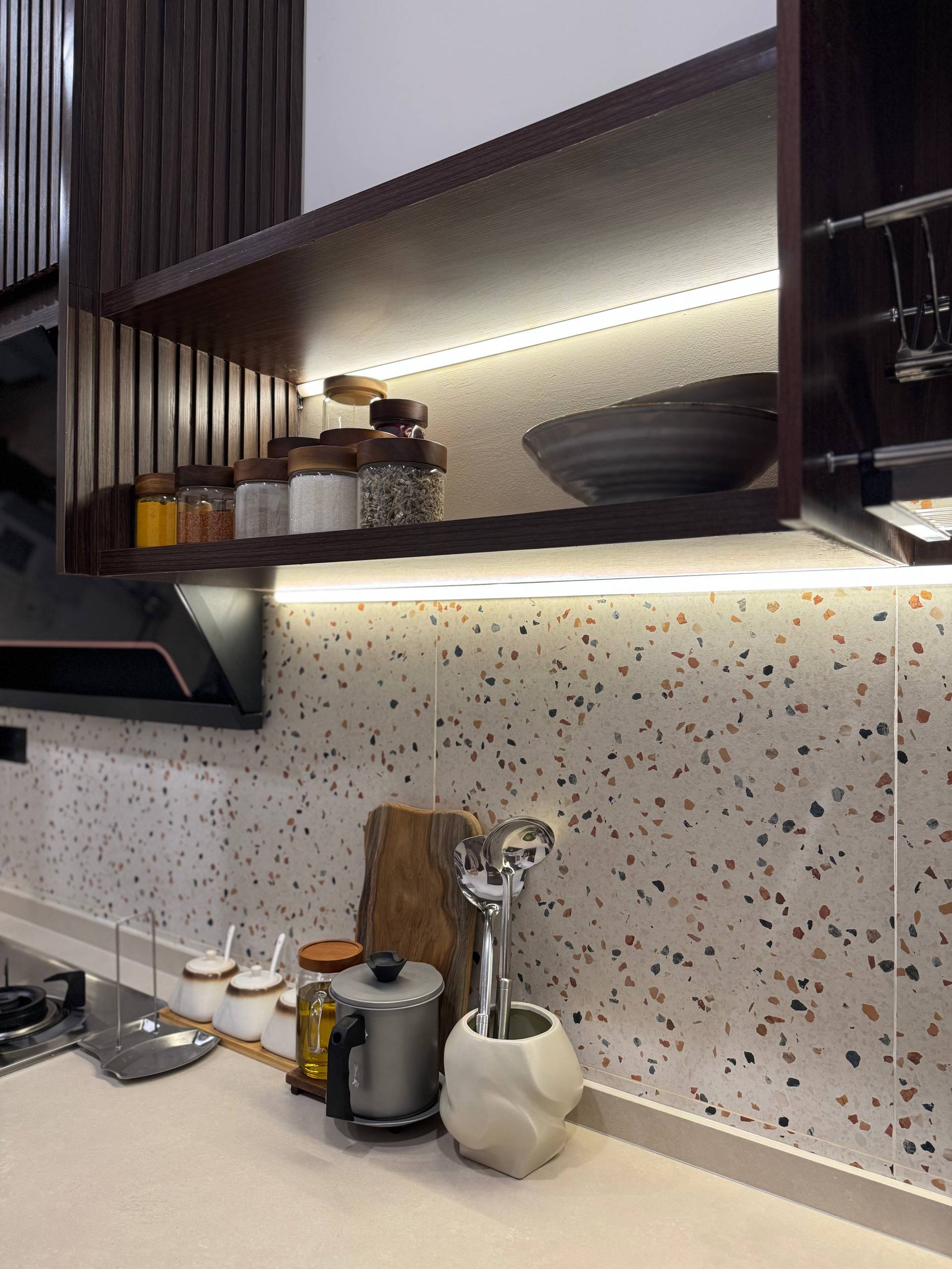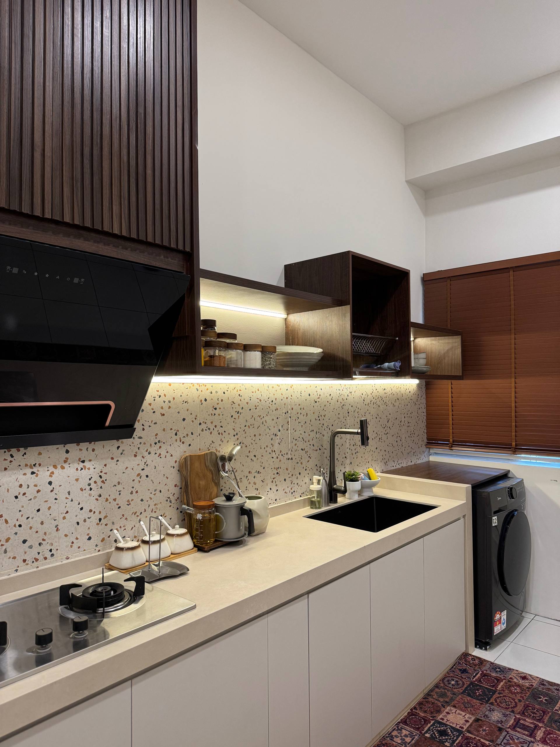 This residential interior renovation project combines modern comfort with warm natural tones. Works completed include: