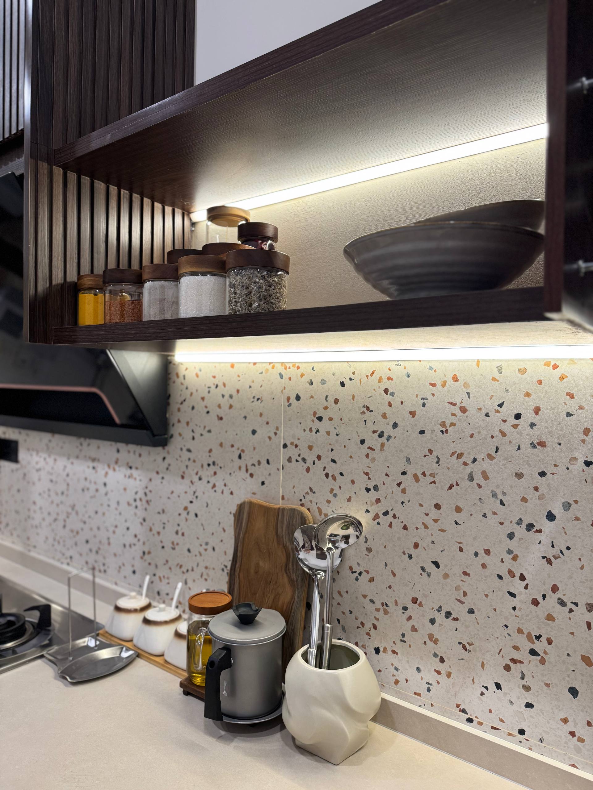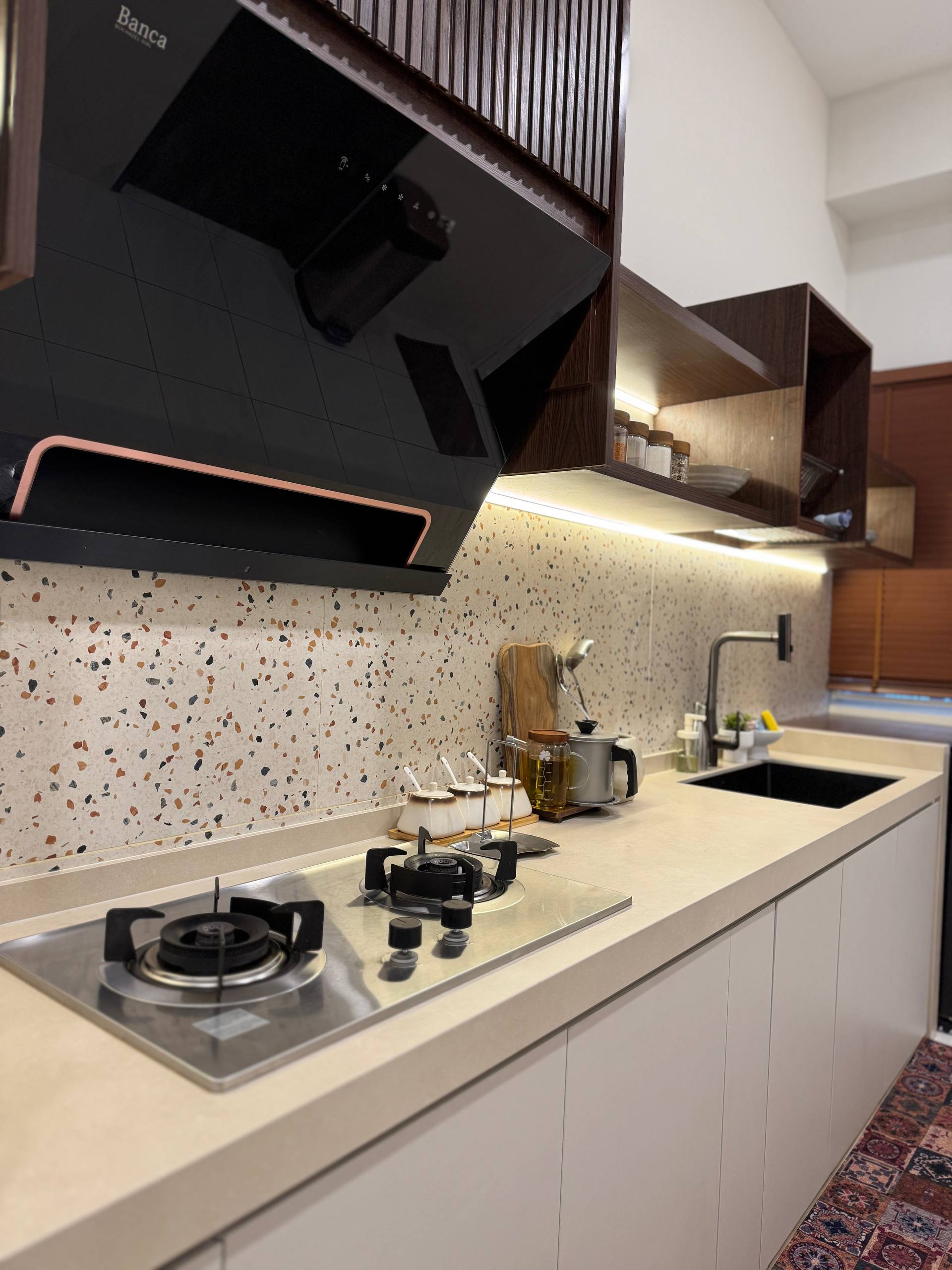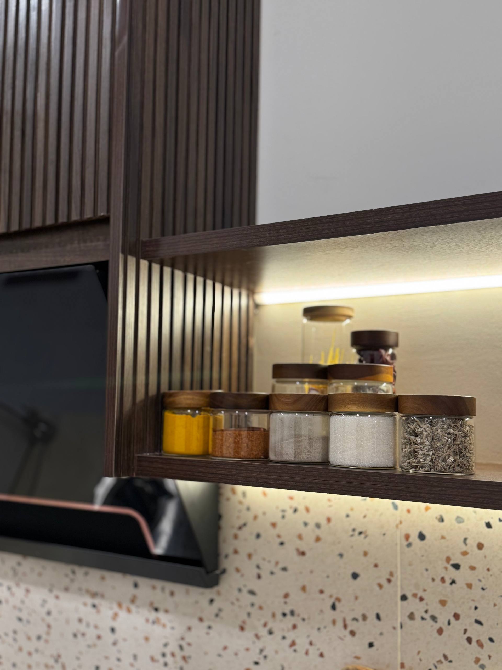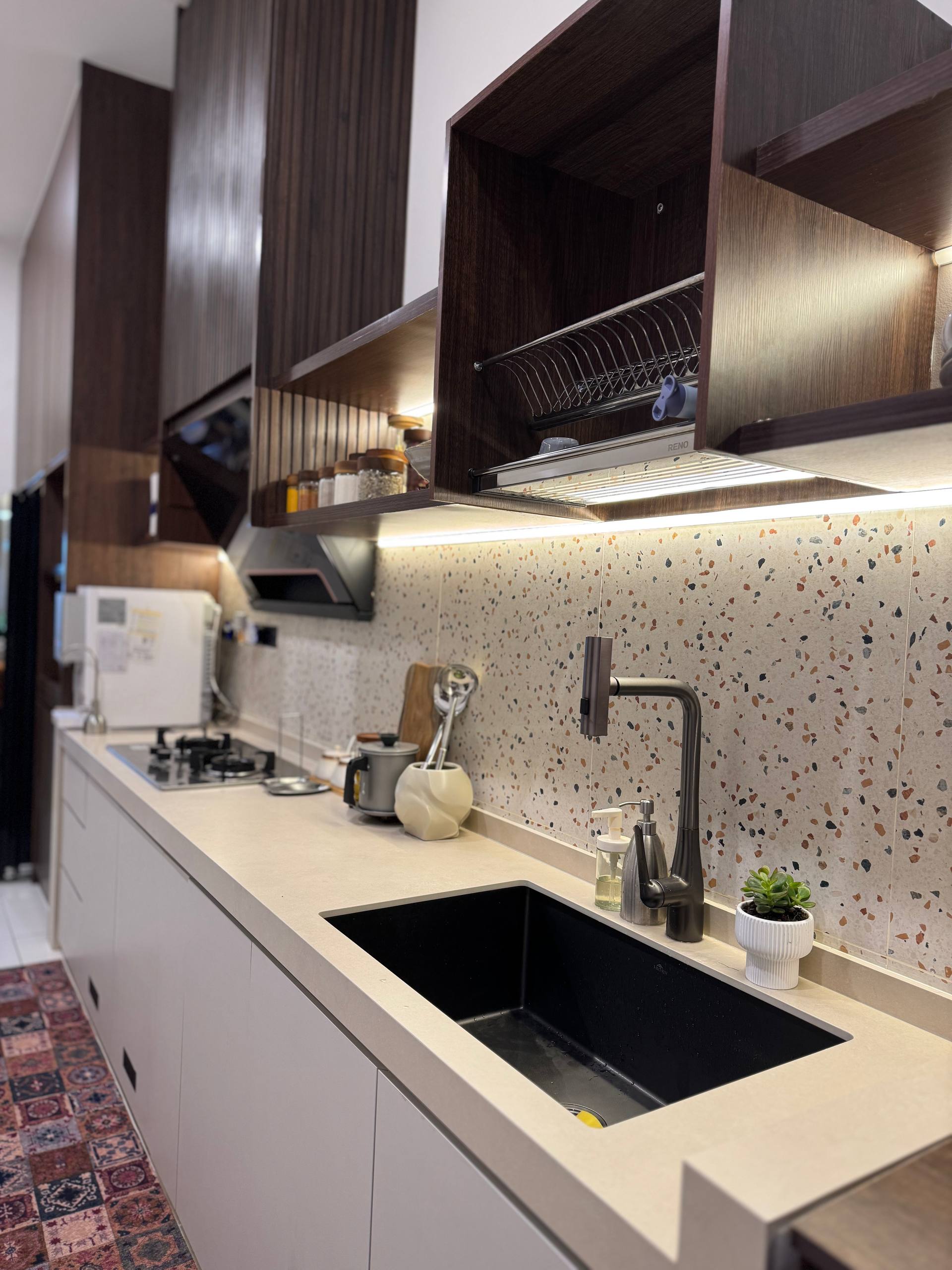 This residential interior renovation project combines modern comfort with warm natural tones. Works completed include: