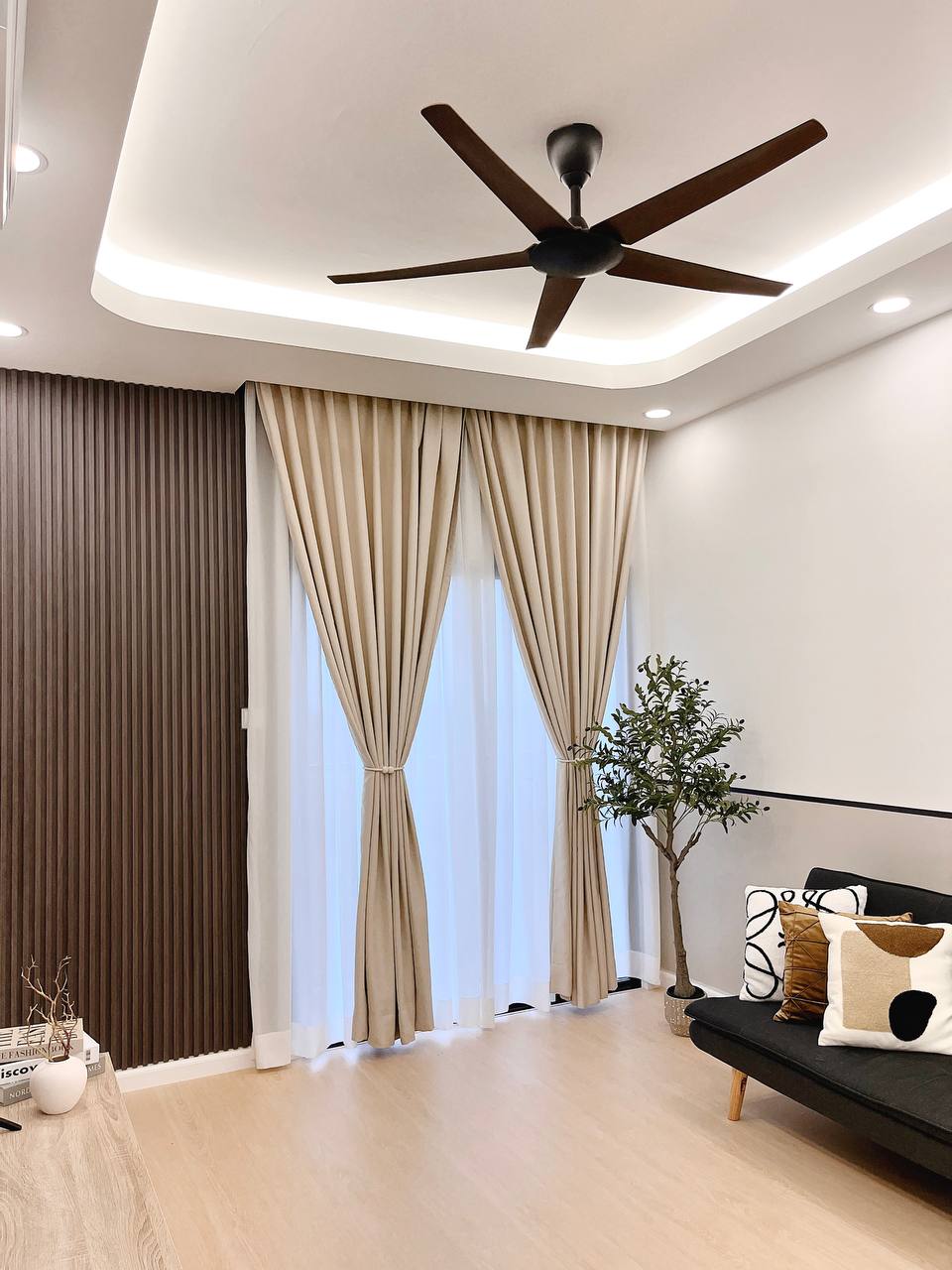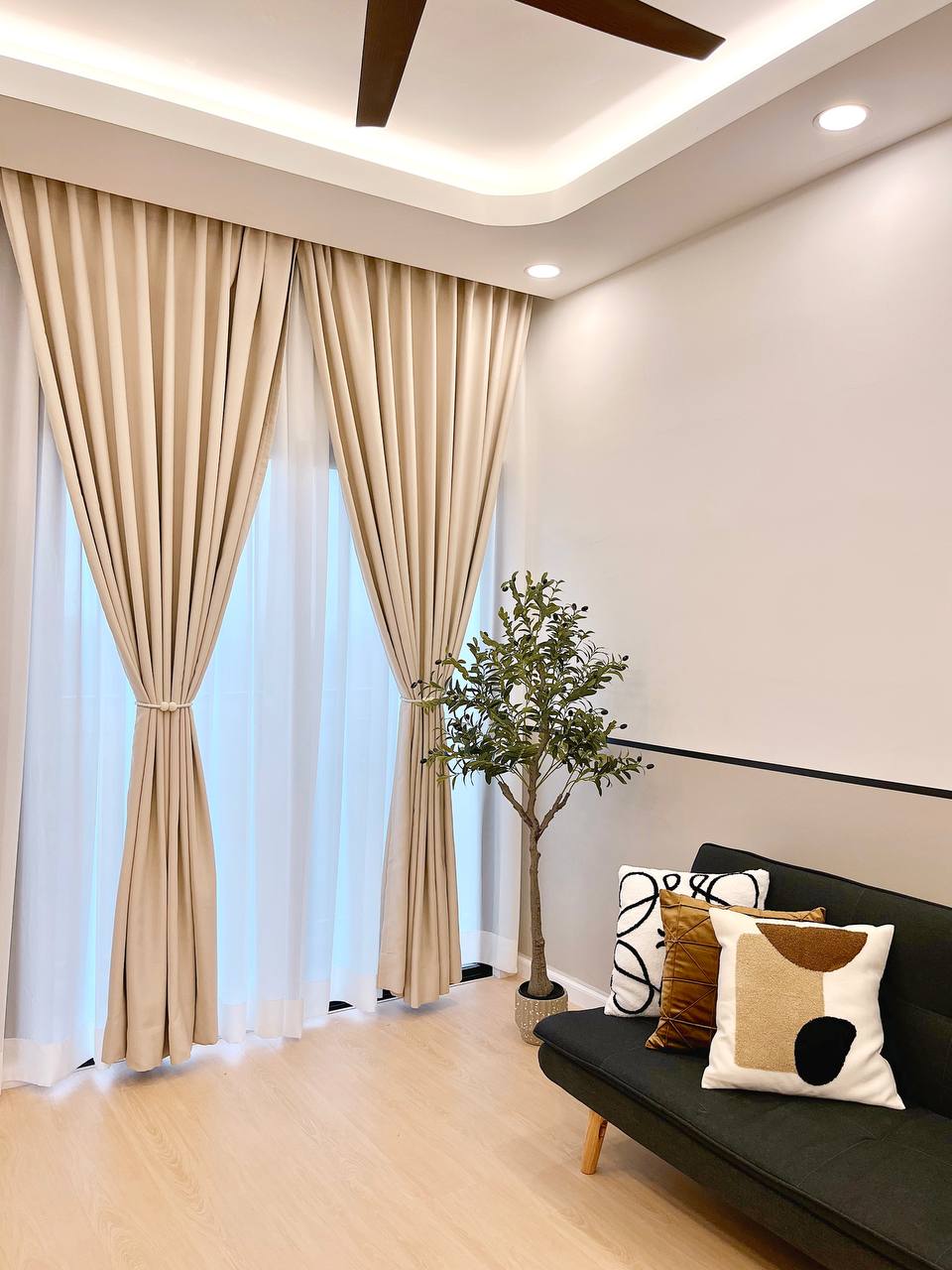 Custom curtain installation for a complete and cohesive interior finish.